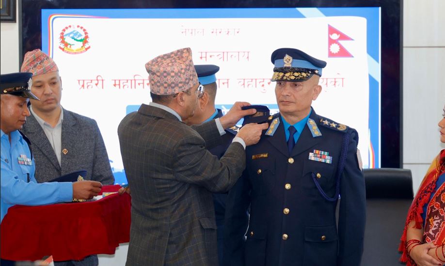 काठमाडौँ । नवनियुक्त प्रहरी महानिरीक्षक दानबहादुर कार्कीले प्रहरी कर्मचारीको मनोबल बढाउँदै सरकार र आमजनसमुदायको अपेक्षा पूरा गर्ने प्रतिबद्धता व्यक्त गररेका छन् । गृह मन्त्रालयमा आज आयोजित विशेष समारोहमा प्रहरी महानिरीक्षको दज्र्यानी चिह्न लगाएपछि सङ्क्षिप्त मन्तव्य राख्दै उनले सङ्गठनमा सुदृढ नेतृत्व र सामूहिकता प्रदर्शन गरिने बताए ।