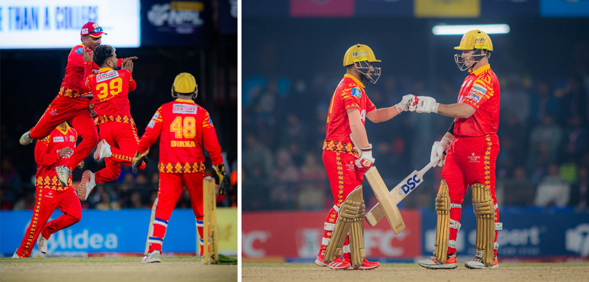 काठमाडौंको इनिङ धरासायी बनाउने क्रममा शेर मल्ल र कप्तान रोहितकुमार पौडेलले समान ३ विकेट लिँदा रुबेन त्रुमपेलमनले २ विकेट लिए।
