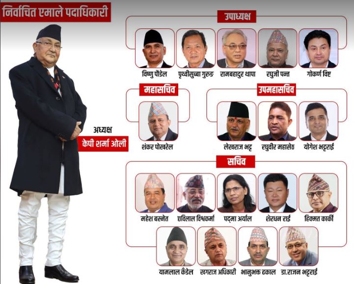 काठमाडौं । नेकपा (एमाले) को काठमाडौंमा सम्पन्न ११औँ महाधिवेशनले नयाँ नेतृत्व चयन गरेको छ । तामझामका साथ सम्पन्न महाधिवेशनले १९ सदस्यीय पदाधिकारीको टिम खडा गरे पनि निर्वाचित अनुहारमा समावेशिताको रङ्ग भने निकै फिका देखिएको छ ।