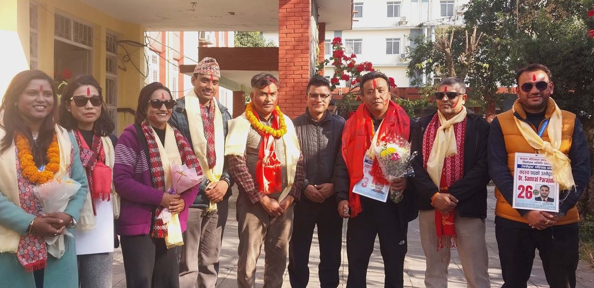 केहीबेरअघि सकिएको मतगणनामा डा.शेर्पाले ५२३४ मत ल्याएर जित हात पारेका हुन् । उनका नजिकका प्रतिस्पर्धी डा.गुरुशरण शाहले ४३५० मत पाए । उपाध्यक्षका अर्का उम्मेदवार डा. अजयसिंह थापाले १८४४ मत प्राप्त गरेका छन् ।